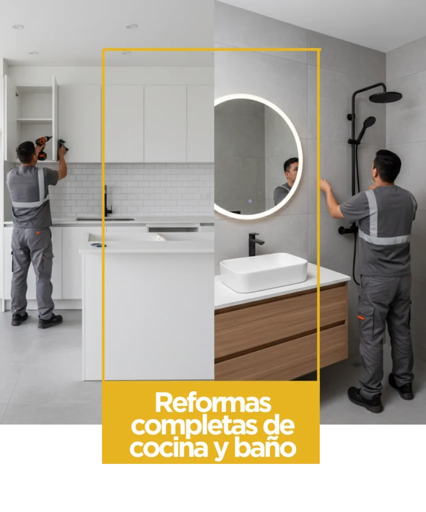 Instalación de muebles a medida o prefabricados, cambio de grifería, lavaplatos y artefactos sanitarios de alta calidad. Incluye colocación profesional de cerámicas, azulejos o porcelanatos en muros y pisos con terminaciones impecables.