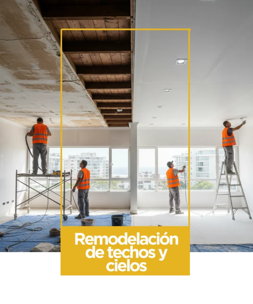 Reparación o reemplazo total de techos, instalación de cielos de yeso o PVC con técnicas profesionales. Incluimos impermeabilización especializada y pintura protectora para prolongar significativamente la vida útil.