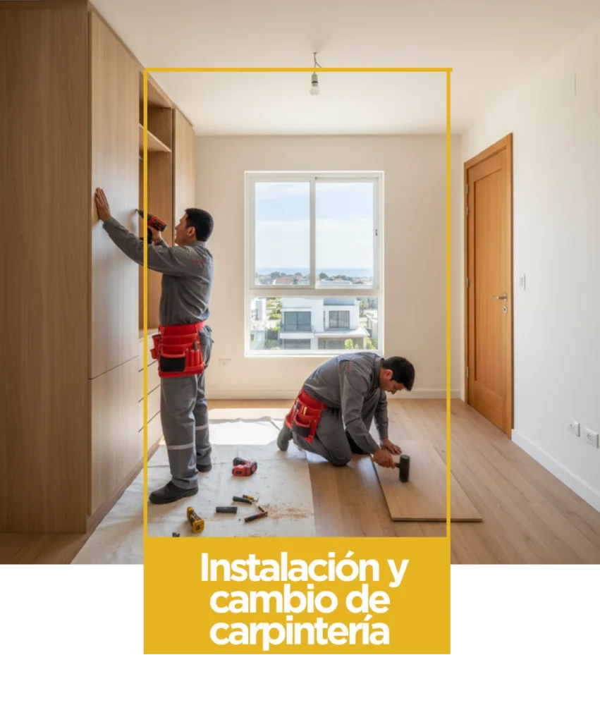 Colocación de puertas interiores y exteriores, marcos, closets y muebles modulares con medidas exactas. Incluye ajuste técnico y acabado final profesional para máxima funcionalidad y estética.